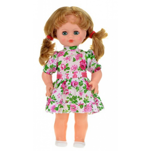 Подвижные руки и ноги. Глаза вставные, закрывающиеся. Руки и голова выполнены из эластичного, приятного на ощупь винила, а туловище и ноги из пластика.