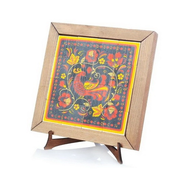 Деревянные пазлы "Русские узоры" очень красивы и познавательны. Они рассказывают о разных народных промыслах, например, хохломской росписи, а собранный узор с другой стороны наглядно продемонстрирует ее.