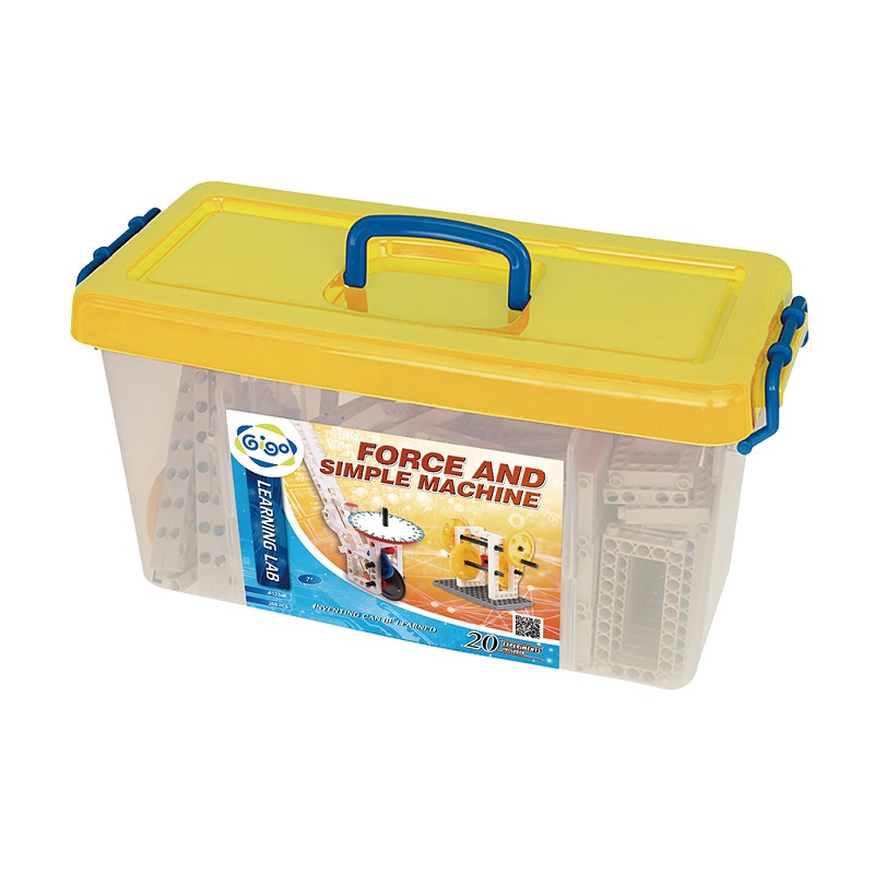 - «Мощность и простые машины» #1234R - 1 набор. Это готовый курс обучения на 20 занятий, в состав входит рабочая тетрадь (методическое пособие для педагога), 268 деталей конструктора, из которых ребенок может собрать 16 готовых моделей по инструкции и неограниченное количество по воображению. Одно занятие рассчитано на 45 мин., во время которого собирается 1 модель. Детали хранятся в пластиковом контейнере с разделителями, крышкой, ручкой и механизмом фиксации крышки. Размер контейнера 445*240*210 мм.